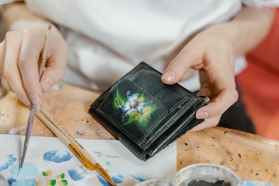 Numerous free PDF wallet patterns cater to diverse skill levels, from simple cardholders to bi-fold and tri-fold designs. Downloadable templates often include tooling layouts, guiding stamp placement for intricate floral or geometric patterns. Beginners can find basic patterns, while experienced crafters explore complex designs. Resources like LeatherCraftTools.com offer original tooling patterns specifically for wallets, enhancing personalization. Printable templates in Letter or A4 size ensure easy adaptation, allowing crafters to create unique, functional, and beautifully tooled leather wallets.