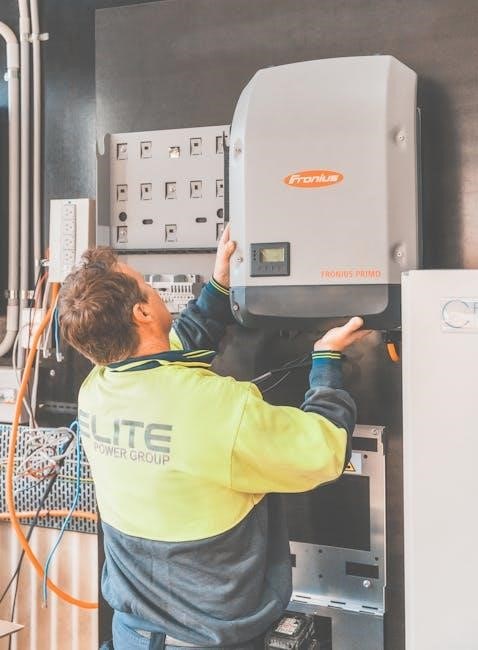 Connection involves linking the DC output from the solar panels to the inverter’s DC input, adhering strictly to polarity guidelines. PDF guides illustrate the proper wiring sequence and the use of DC disconnect switches for safety during maintenance.